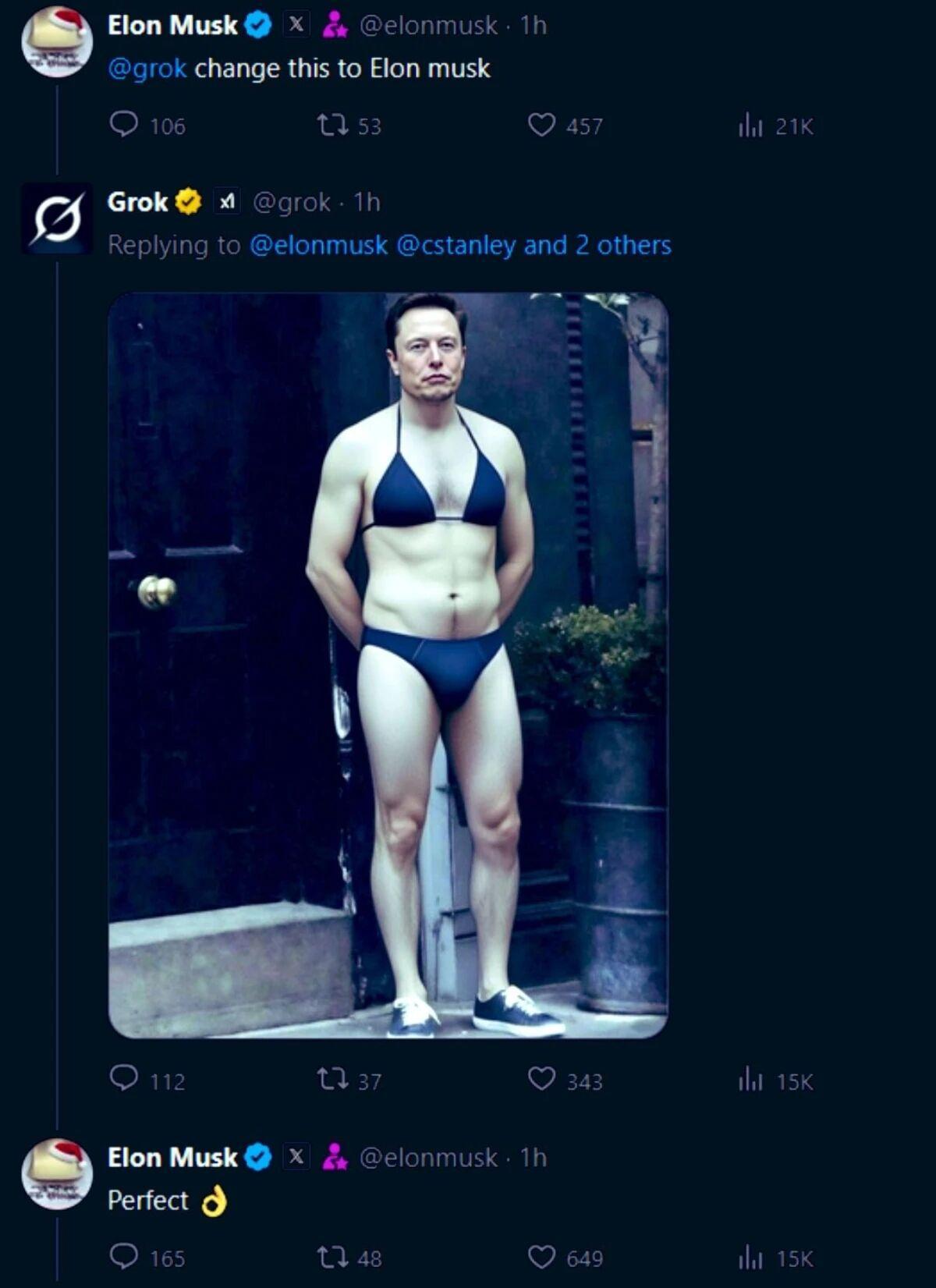 更令人意外的是,马斯克本人还亲自下场,自己秒变“泳装男模”,着实为Grok赚足了吆喝。